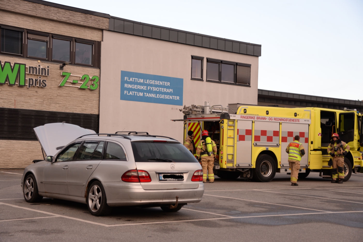 Nødetatene måtte fredag morgen rykke ut til Øvre Hønengaten i Hønefoss. En diesel personbil hadde tatt fyr. Hun som kjørte bilen fikk parkert på plassen foran Kiwi. Det ble ingen personskader. Det hadde tatt fyr i motorrommet.